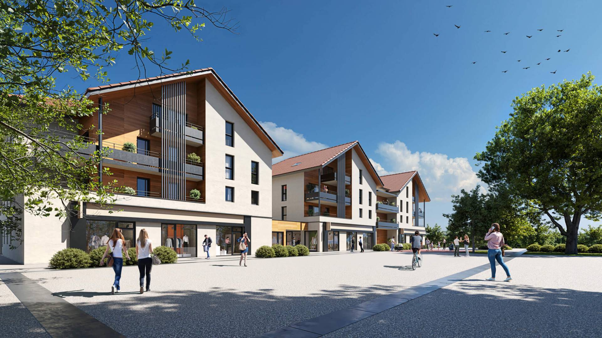 Répartis sur 5 bâtiments, « Cœur Frangy » est composé de 80 logements, avec des appartements locatifs sociaux, en bail réel solidaire (BRS) et en accession libre, ainsi que plusieurs commerces et services de proximité et une terrasse-brasserie.